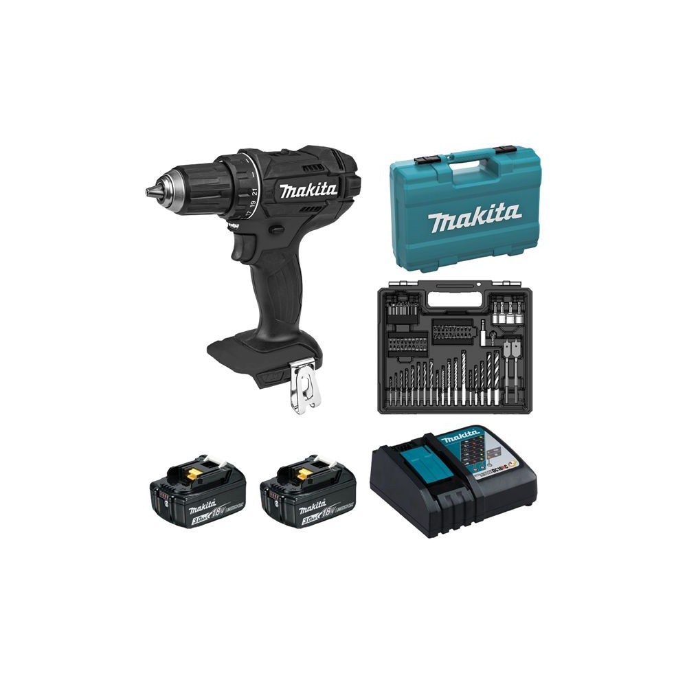 Perceuse-visseuse LXT 18V 62 Nm Black avec 2 batteries 3Ah, chargeur rapide et coffret avec accessoires - Makita DDF482FX1B