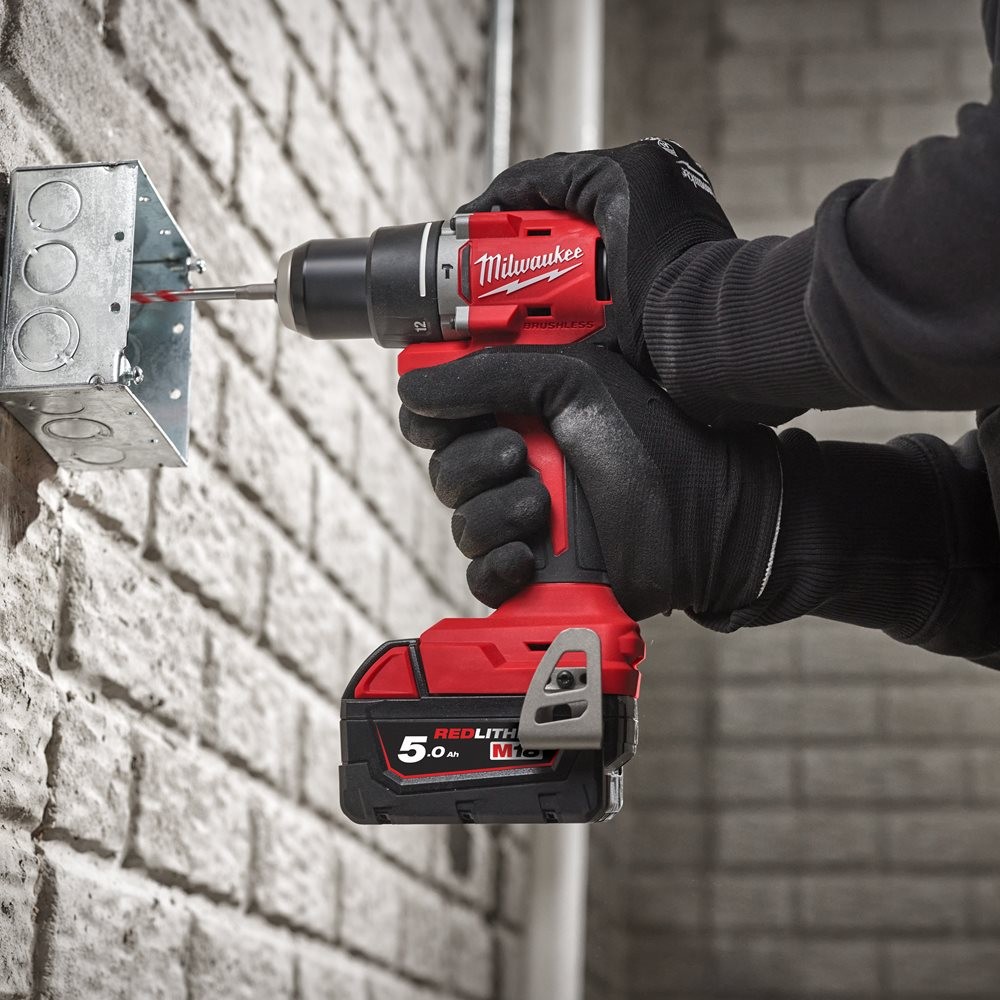 Perceuse visseuse compacte brushless M18 BLDDRC avec 2 batteries 5Ah, chargeur et coffret - Milwaukee M18 BLDDRC-502C