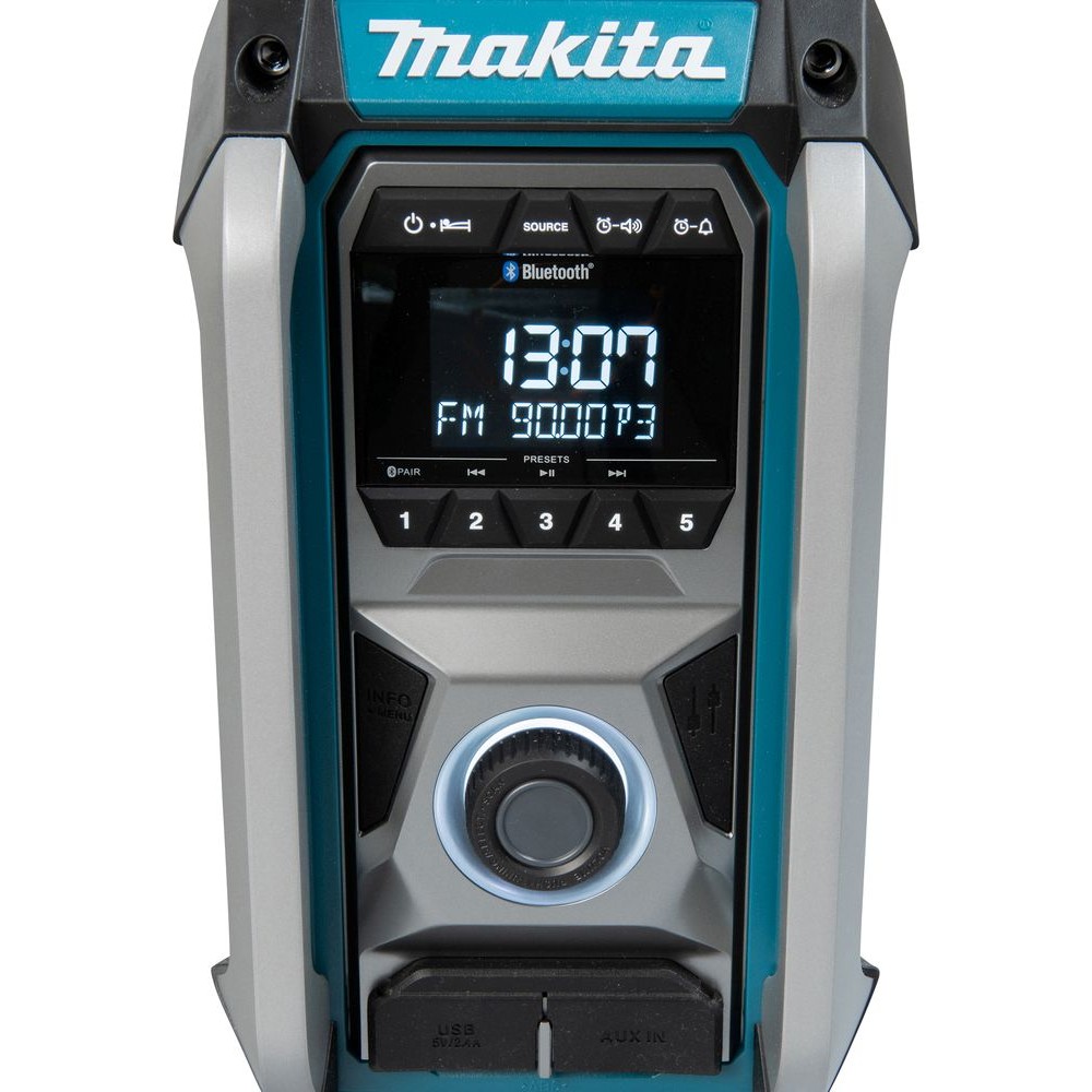 Radio de chantier Makita MR006G Bluetooth compatible CXT, LXT et XGT. Son puissant, 7 modes d’égalisation, protection IP65 et recharge USB 2.4 A.