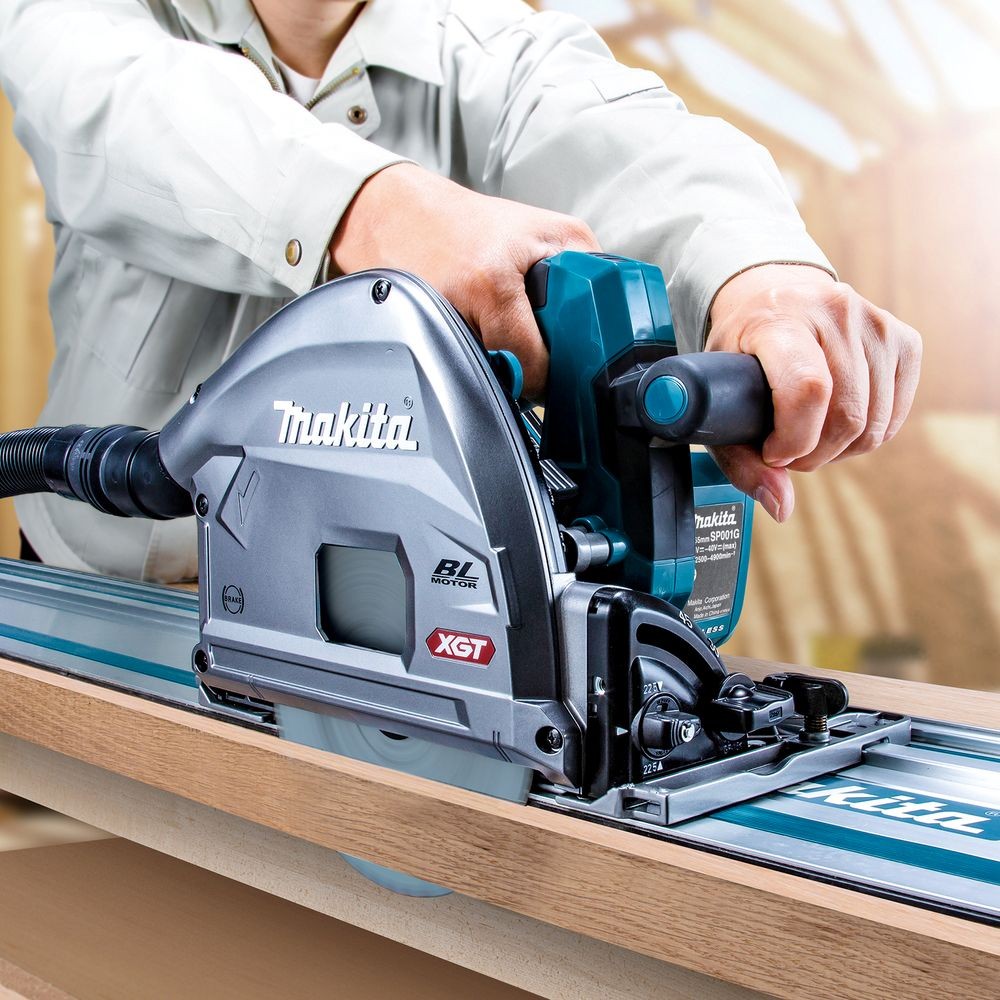 La scie plongeante Makita SP001GZ01, alimentée par la plateforme XGT 40V max et équipée d’un moteur sans charbon (BL Motor), offre des performances élevées et une précision exceptionnelle pour les travaux de coupe exigeants.